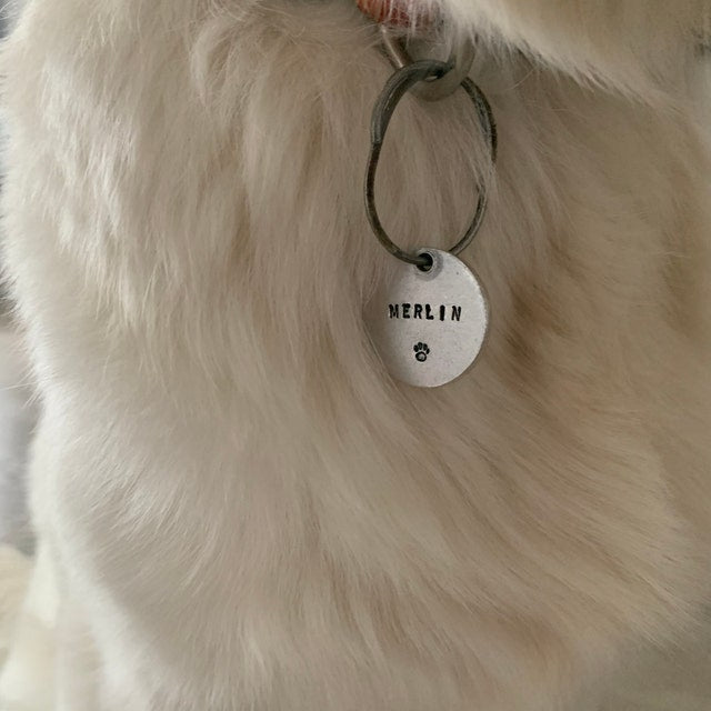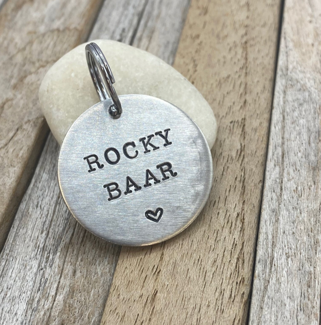 1 gepersonaliseerde dierenpenning inclusief splitring om te bevestigen aan de halsband.