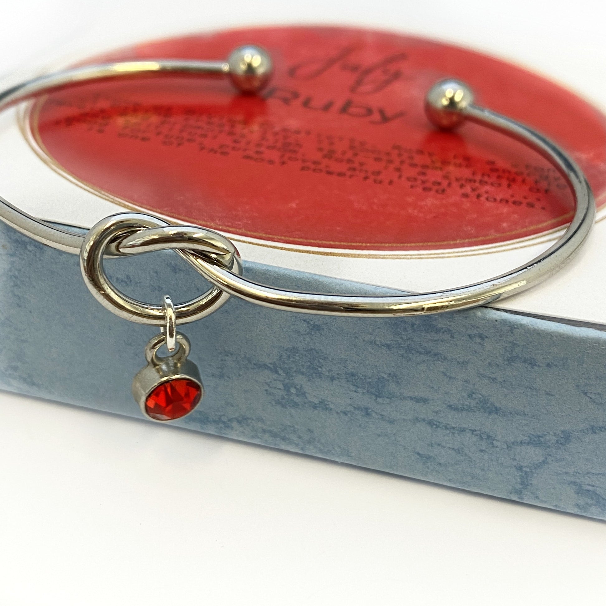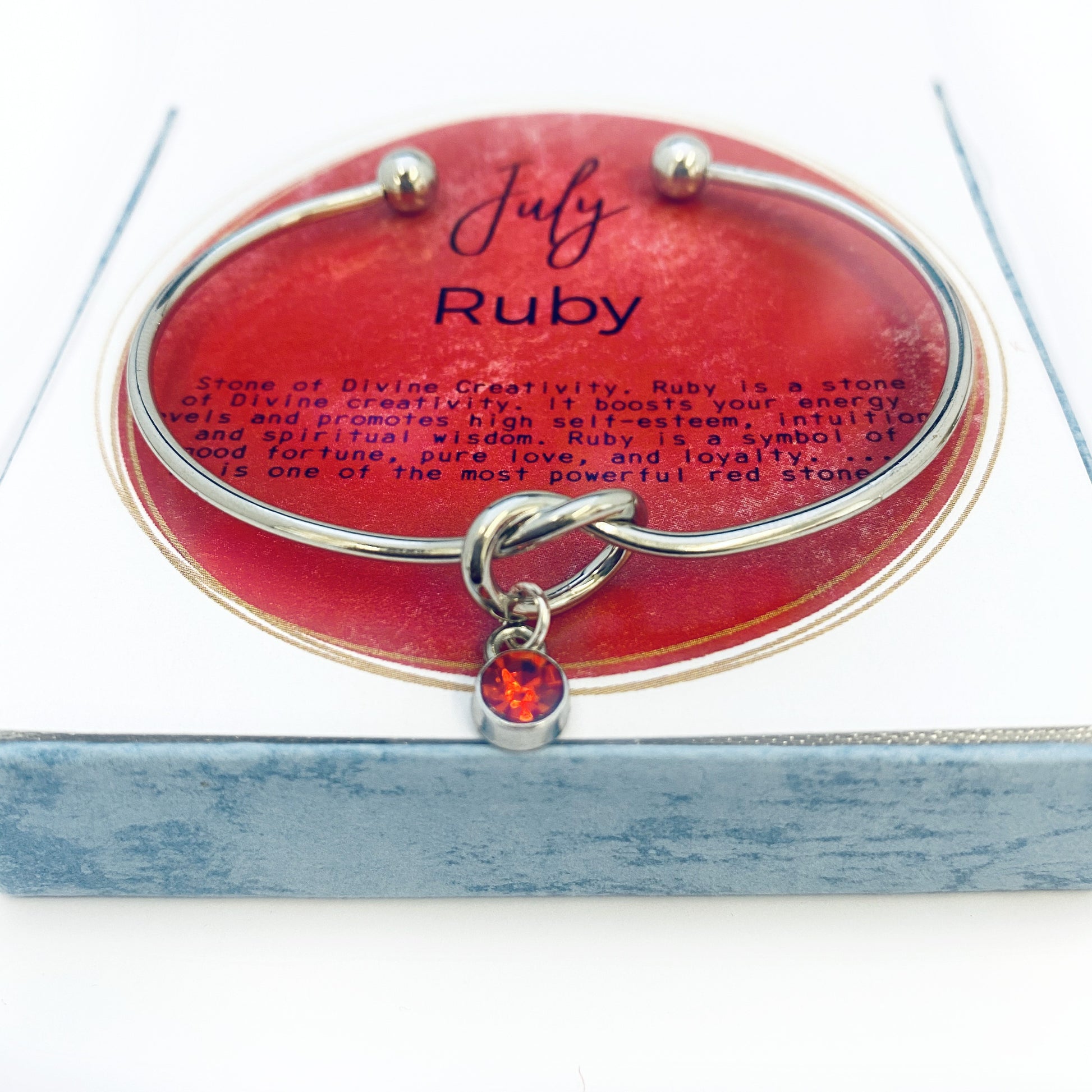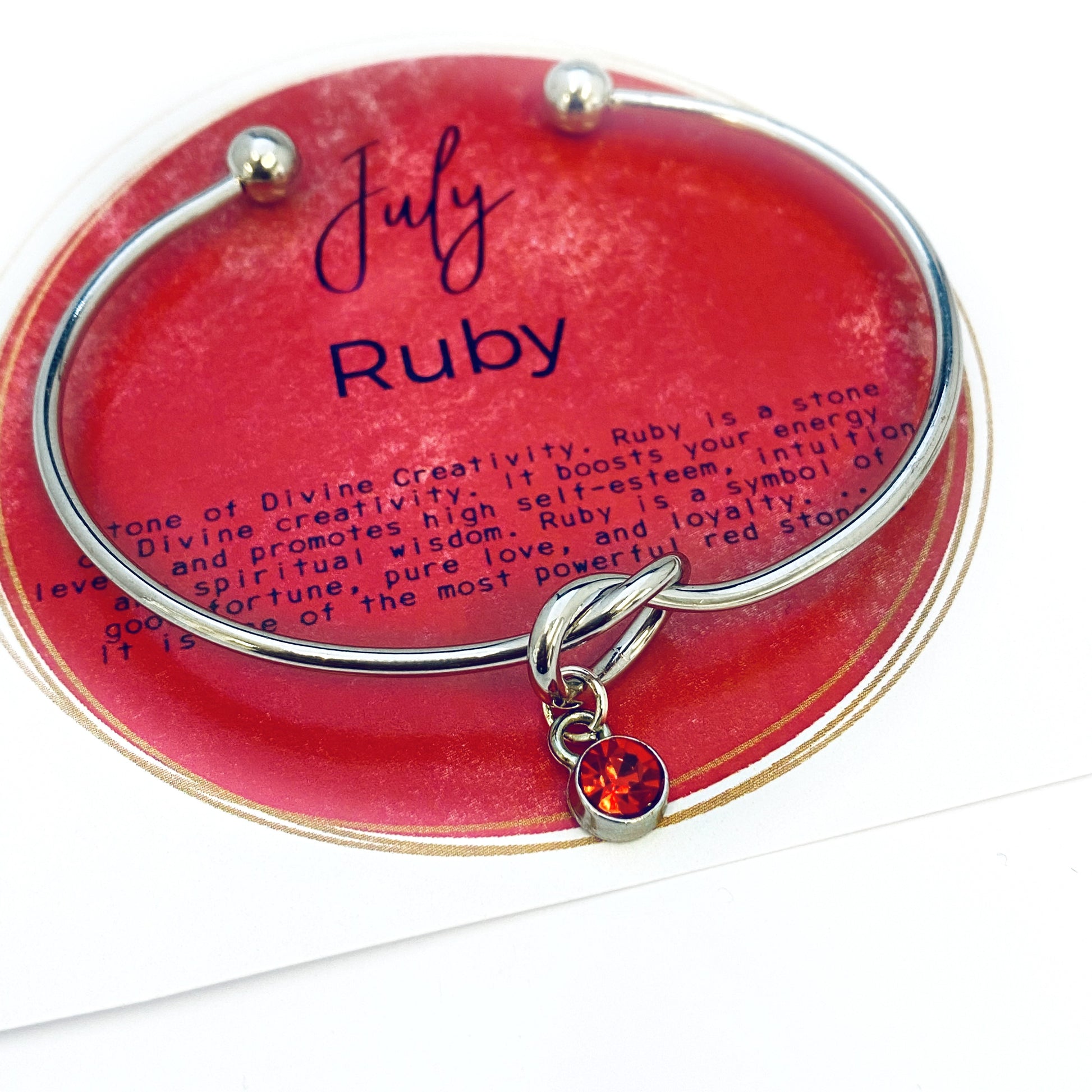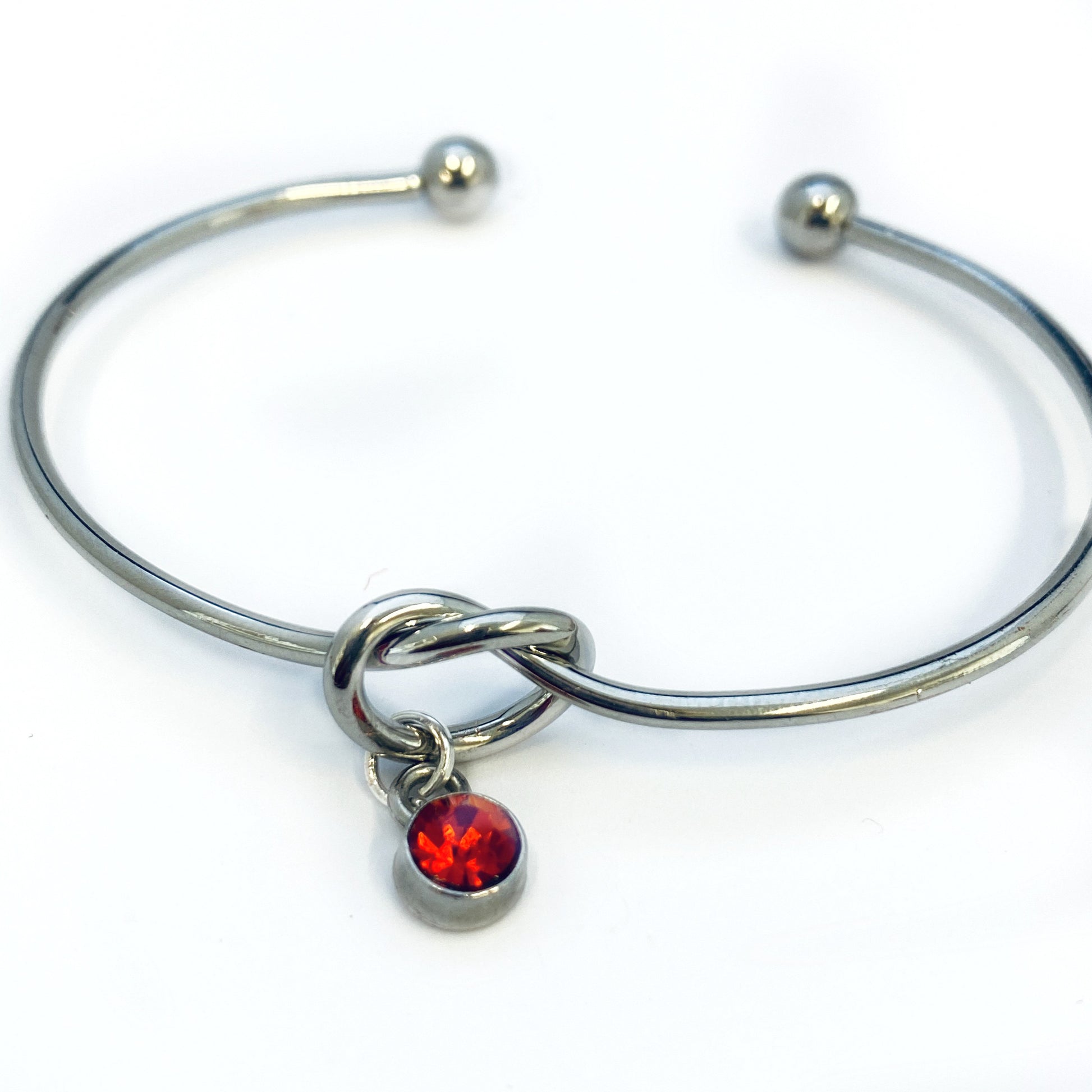 Gepersonaliseerde KNOOP Bangle, juli Birthstone Armband, Bind de Knoop Armband Cadeau voor haar Geboortesteen Sieraden Bruiloft Armband, Aangepaste armband