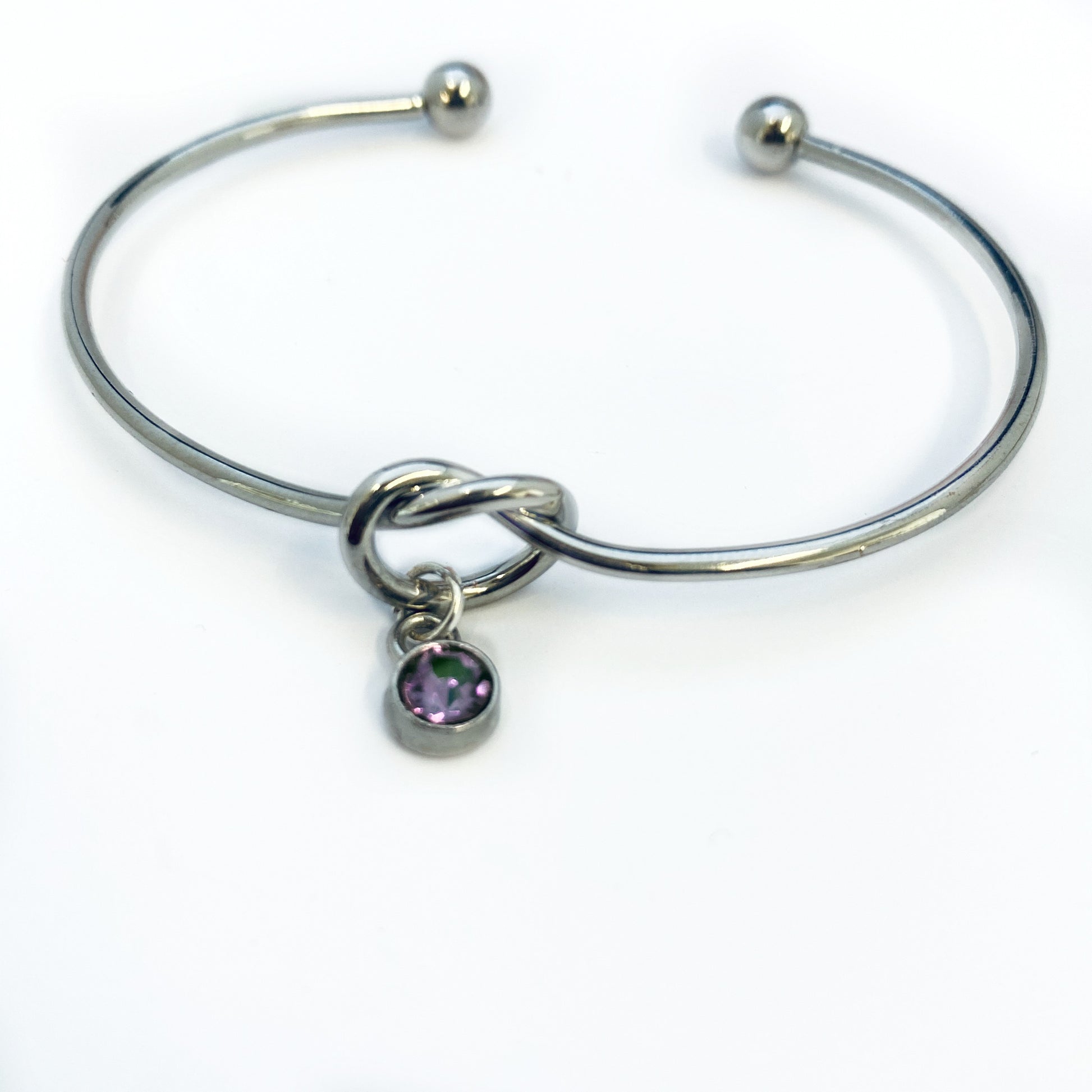 • Eén zilveren knooparmband bevat één kristallen geboortesteenbedel naar keuze