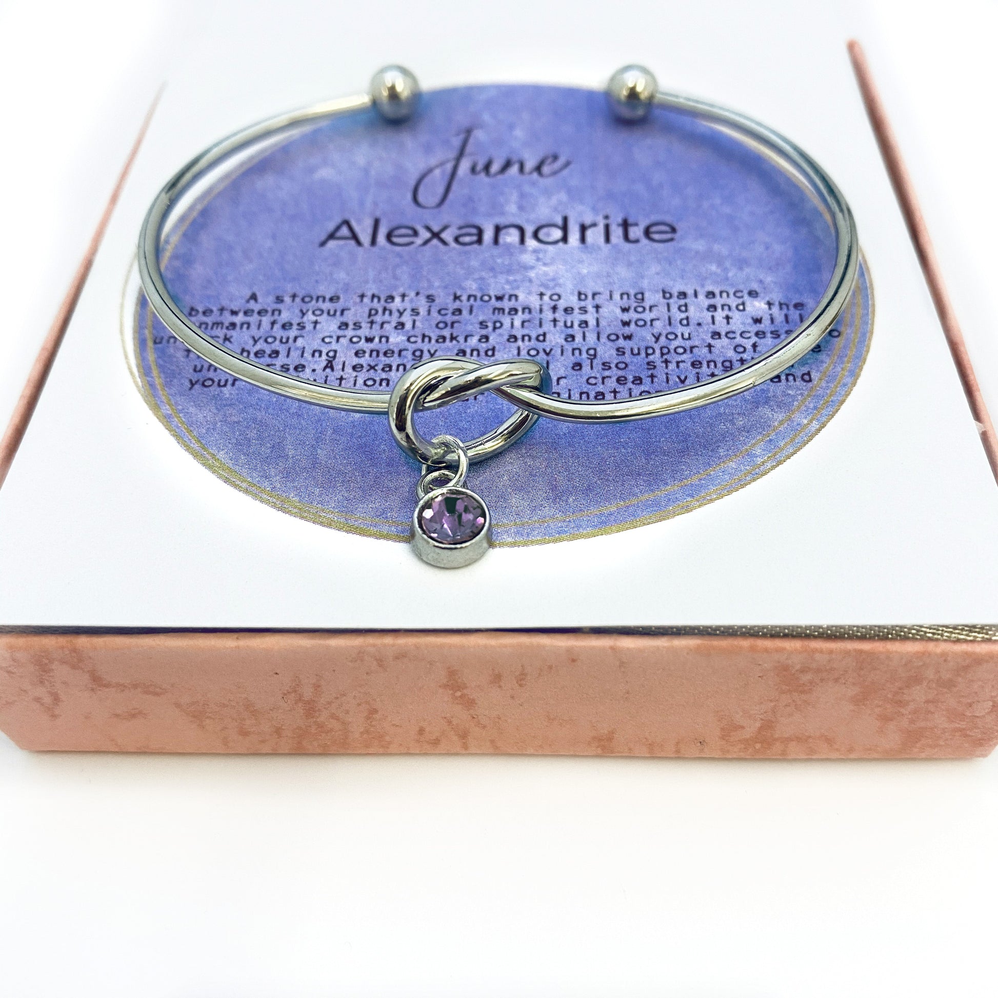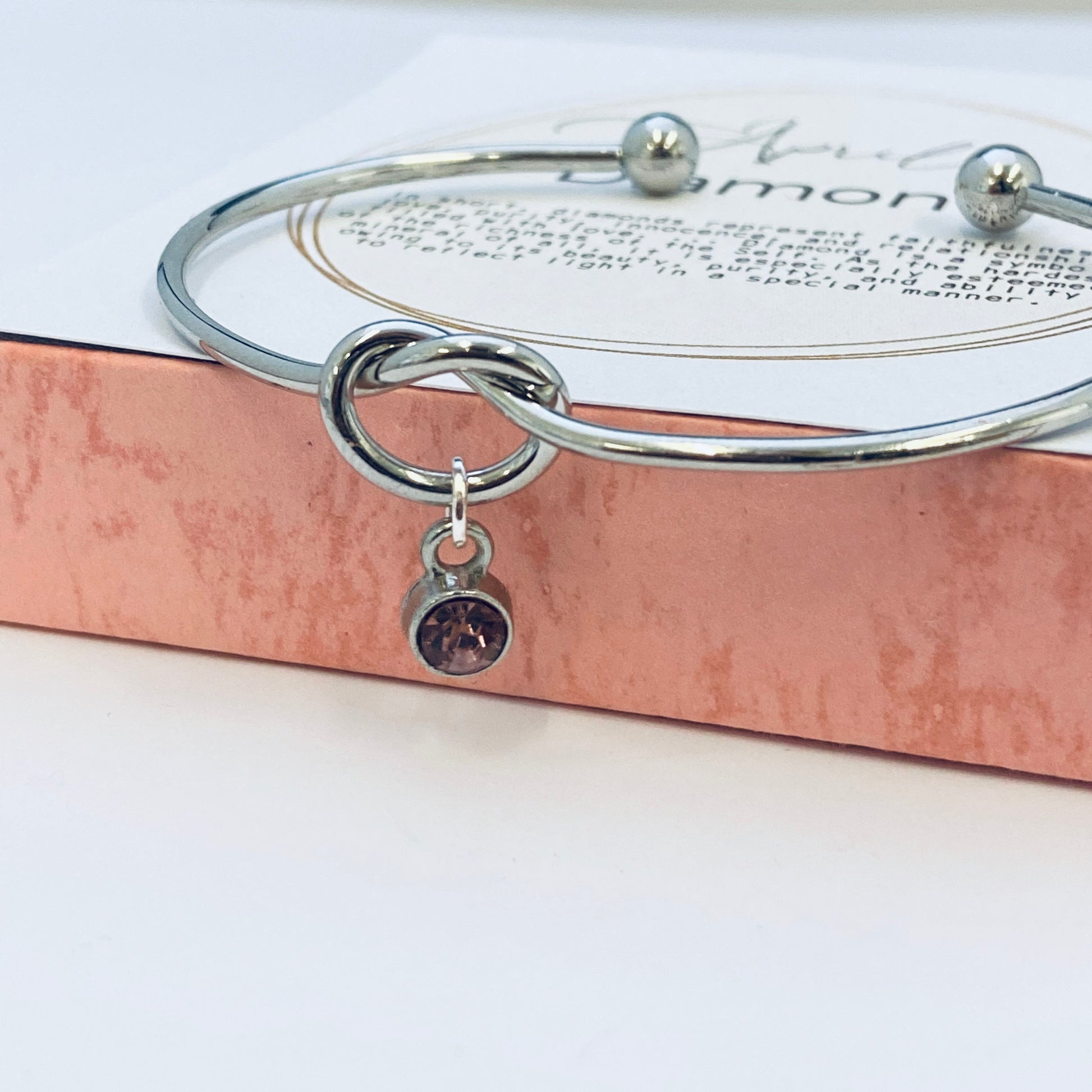 • Eén zilveren knooparmband bevat één kristallen geboortesteenbedel naar keuze