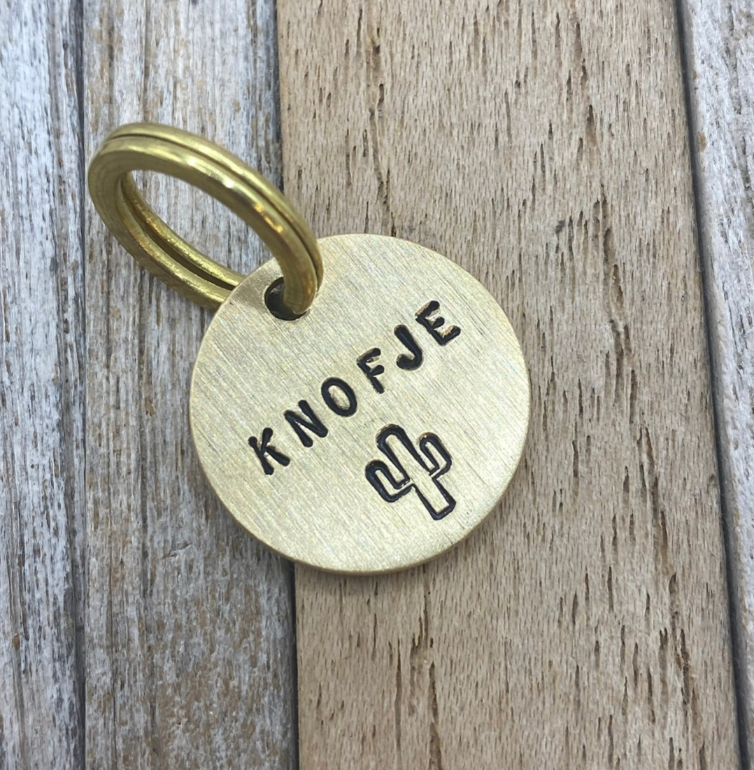 1 gepersonaliseerde dierenpenning inclusief splitring om te bevestigen aan de halsband.