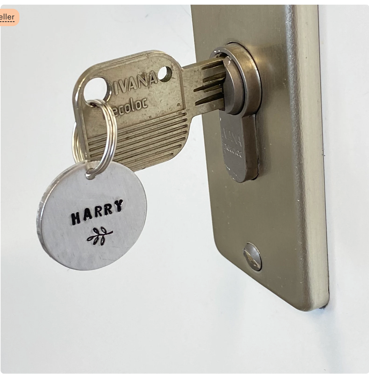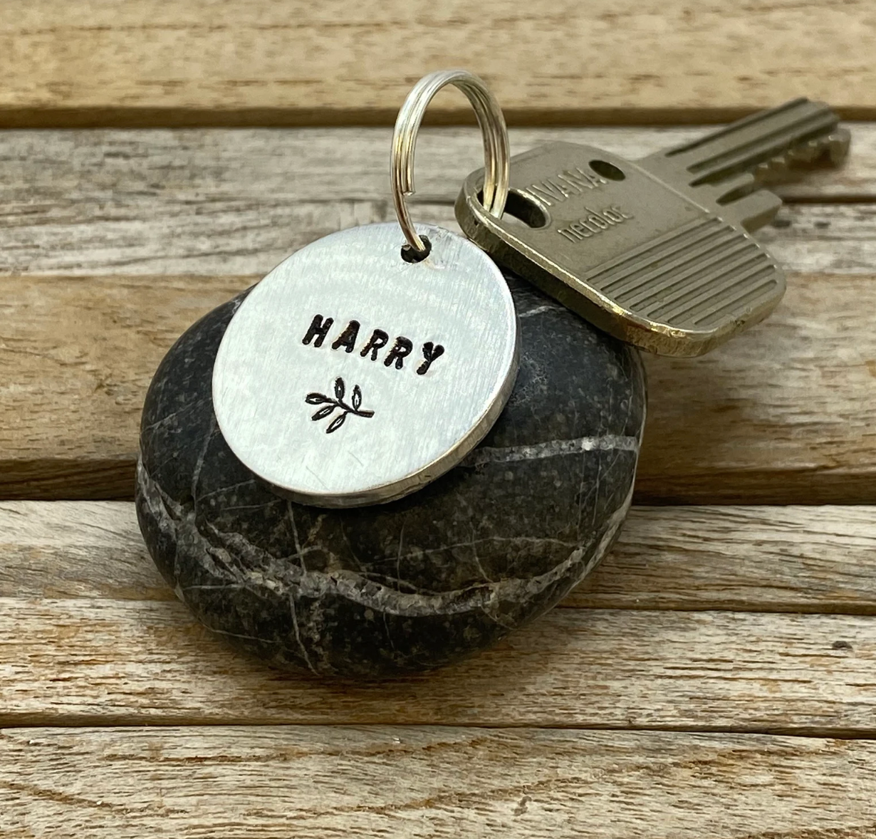 1 gepersonaliseerde dierenpenning inclusief splitring om te bevestigen aan de halsband.