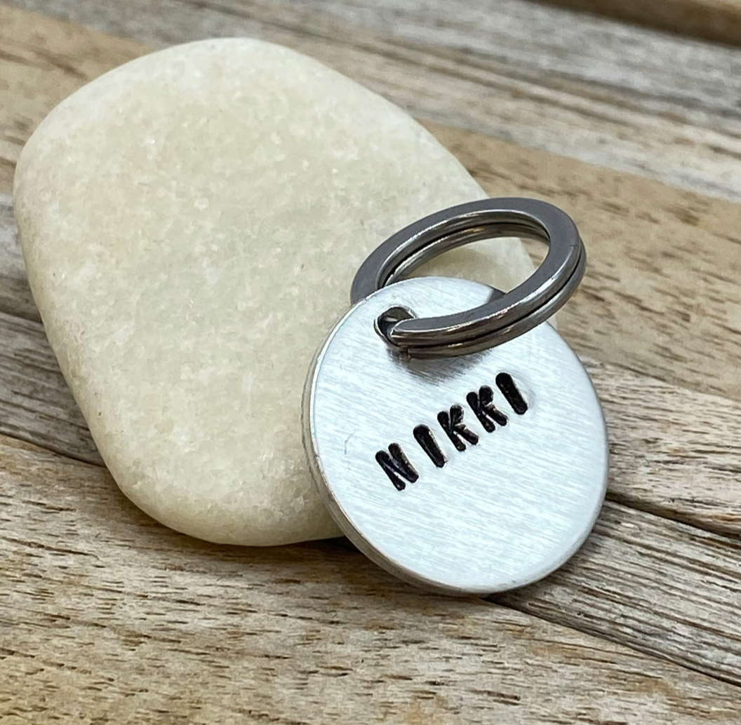 1 gepersonaliseerde dierenpenning inclusief splitring om te bevestigen aan de halsband.
