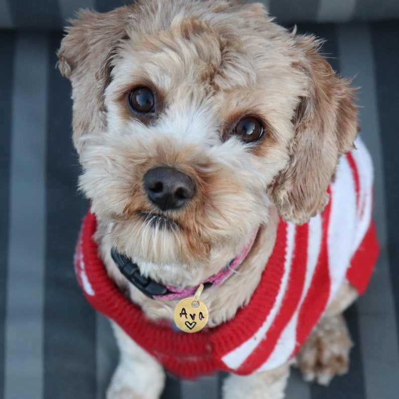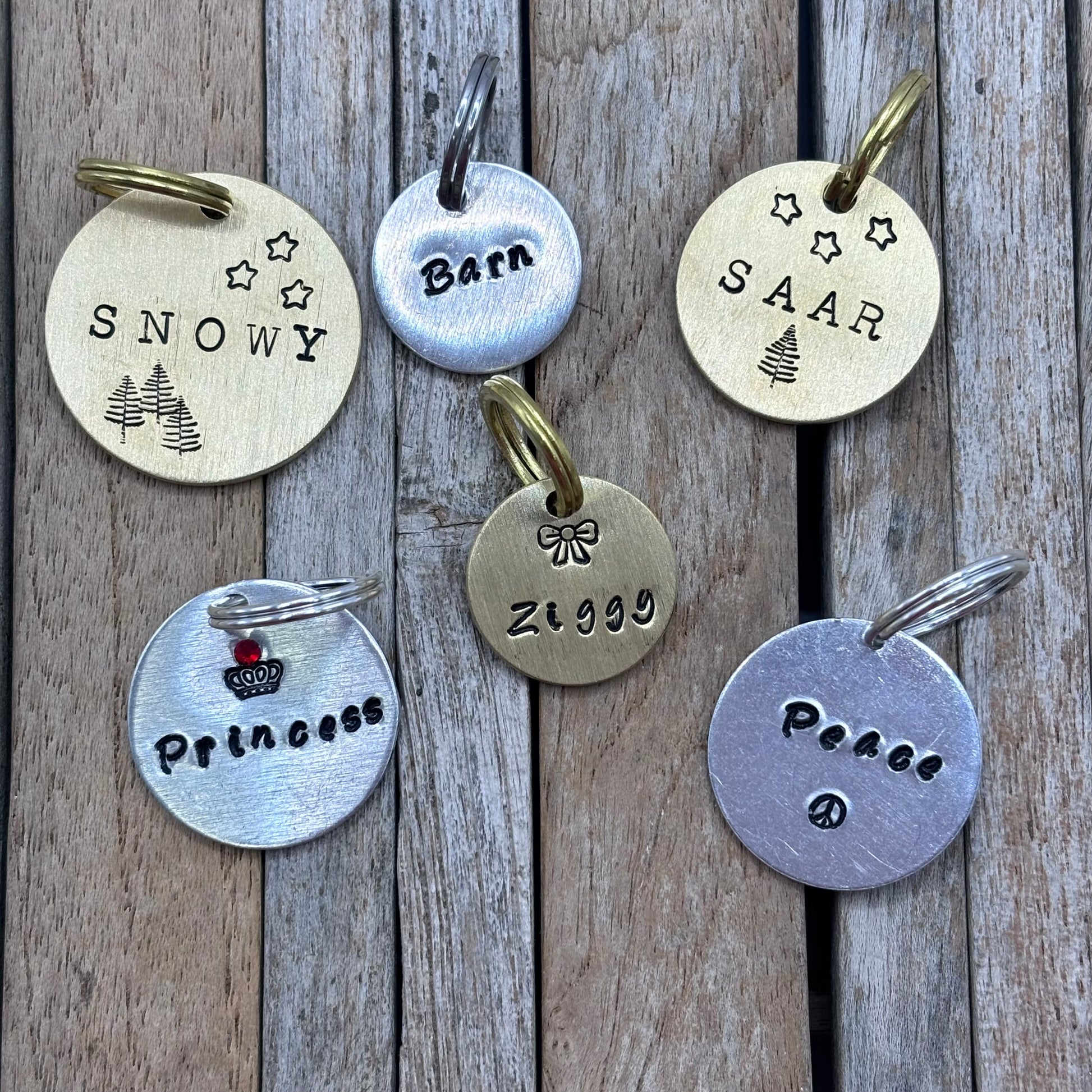 1 gepersonaliseerde dierenpenning inclusief splitring om te bevestigen aan de halsband.