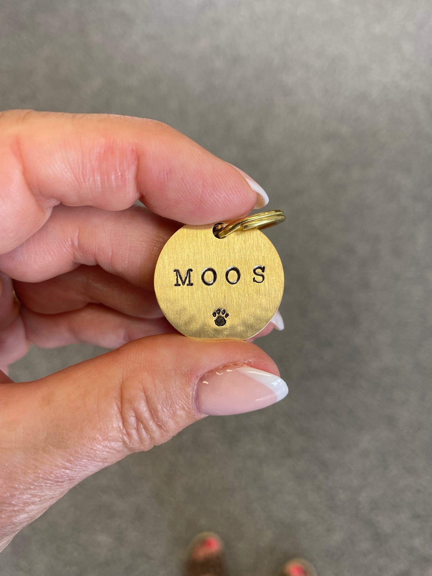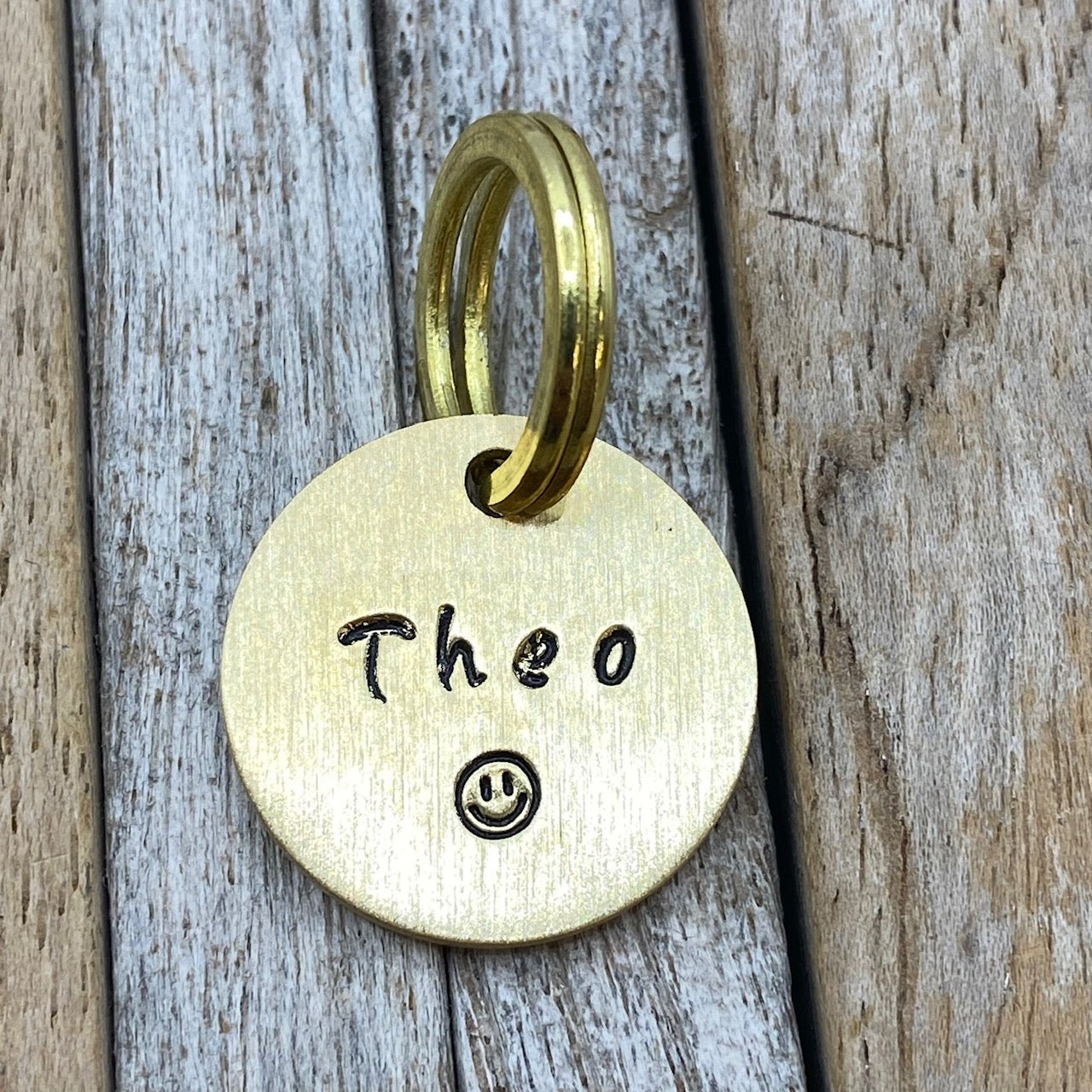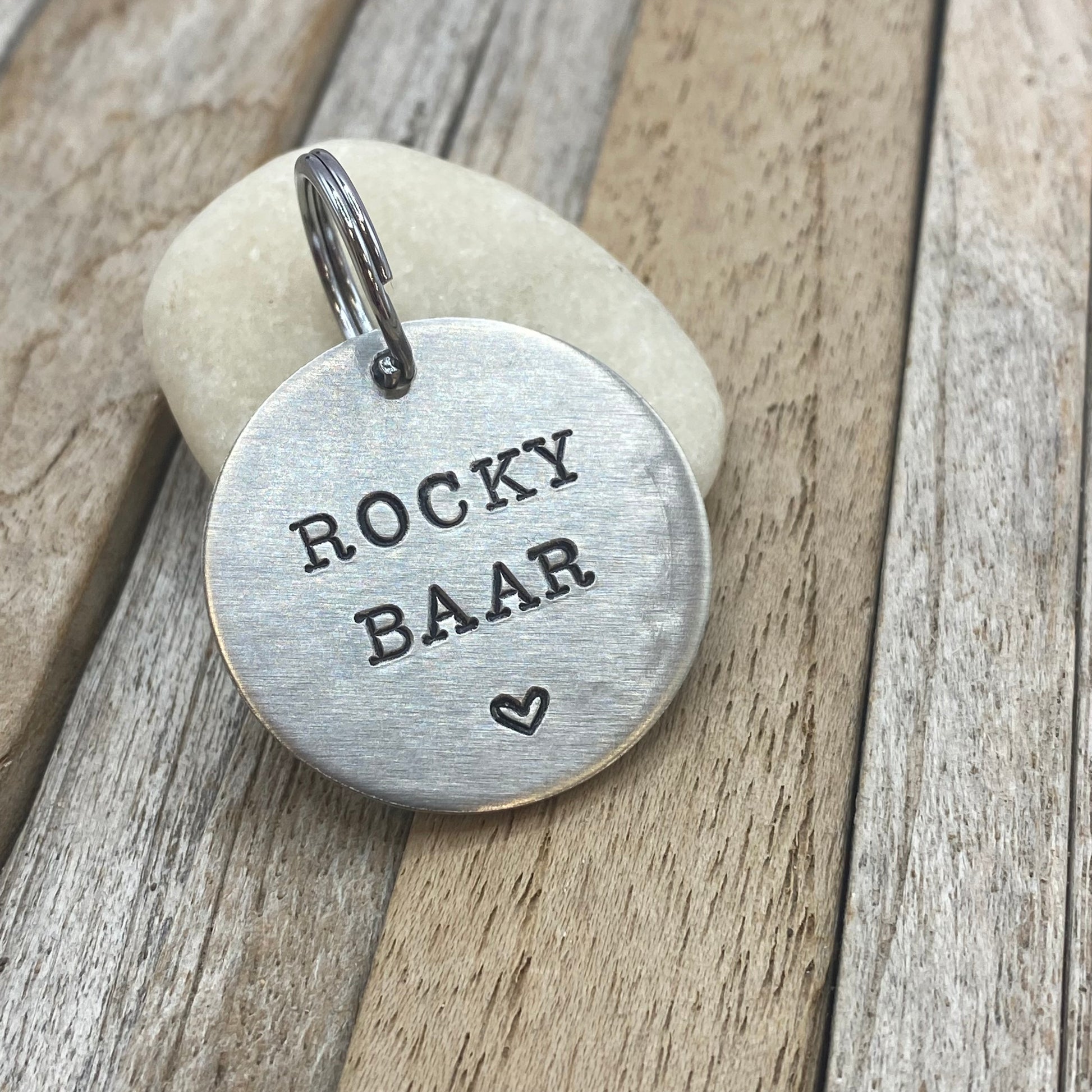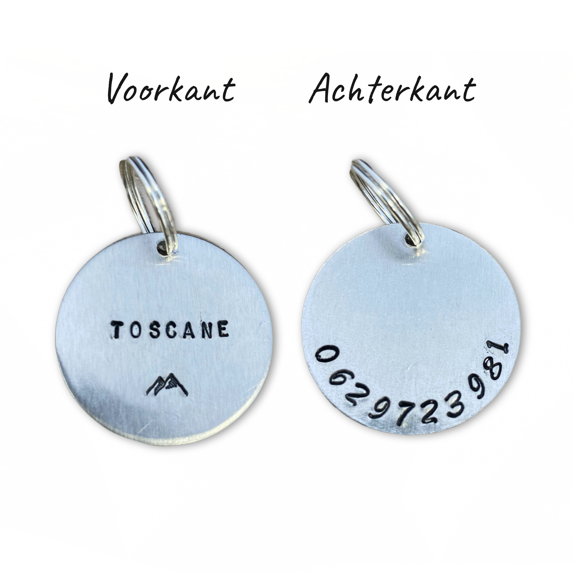 1 gepersonaliseerde dierenpenning inclusief splitring om te bevestigen aan de halsband.
