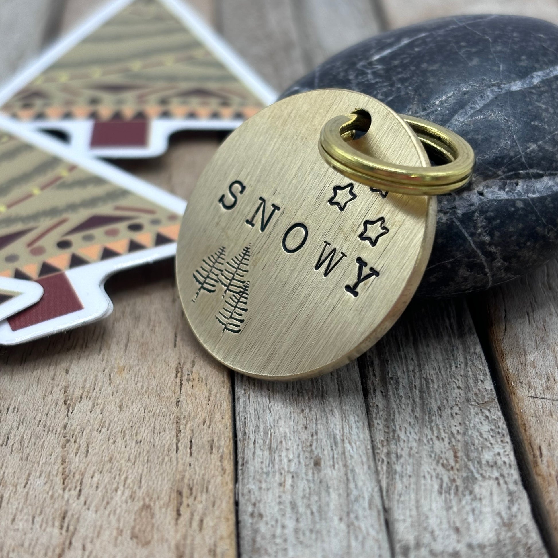 Kerst dierenpenning met sterren en dennenbomen