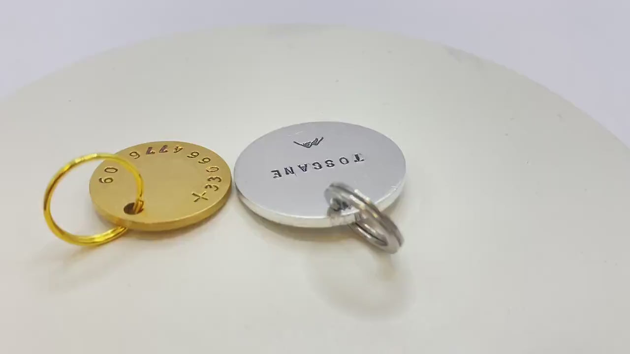 1 gepersonaliseerde dierenpenning inclusief splitring om te bevestigen aan de halsband.
