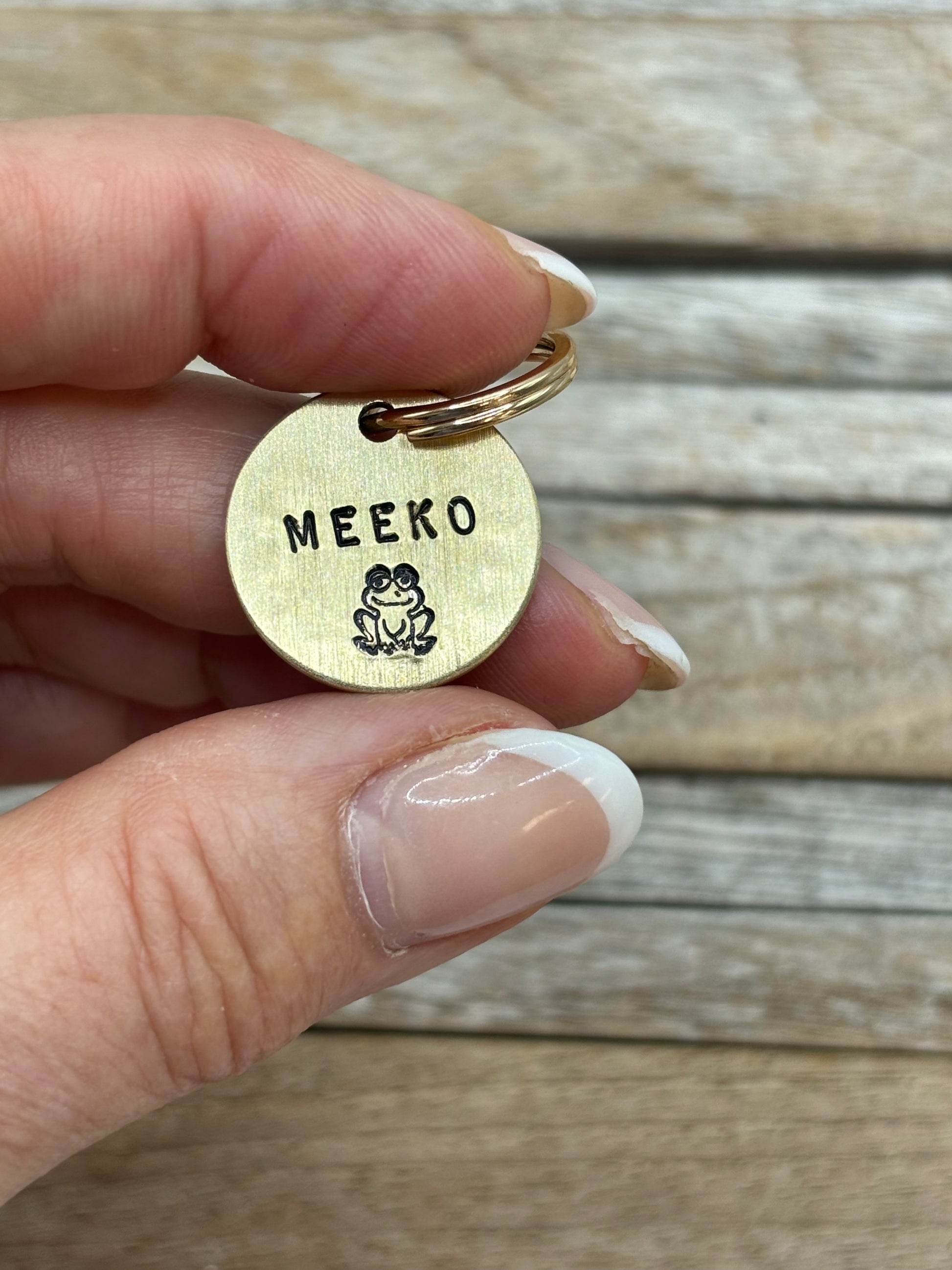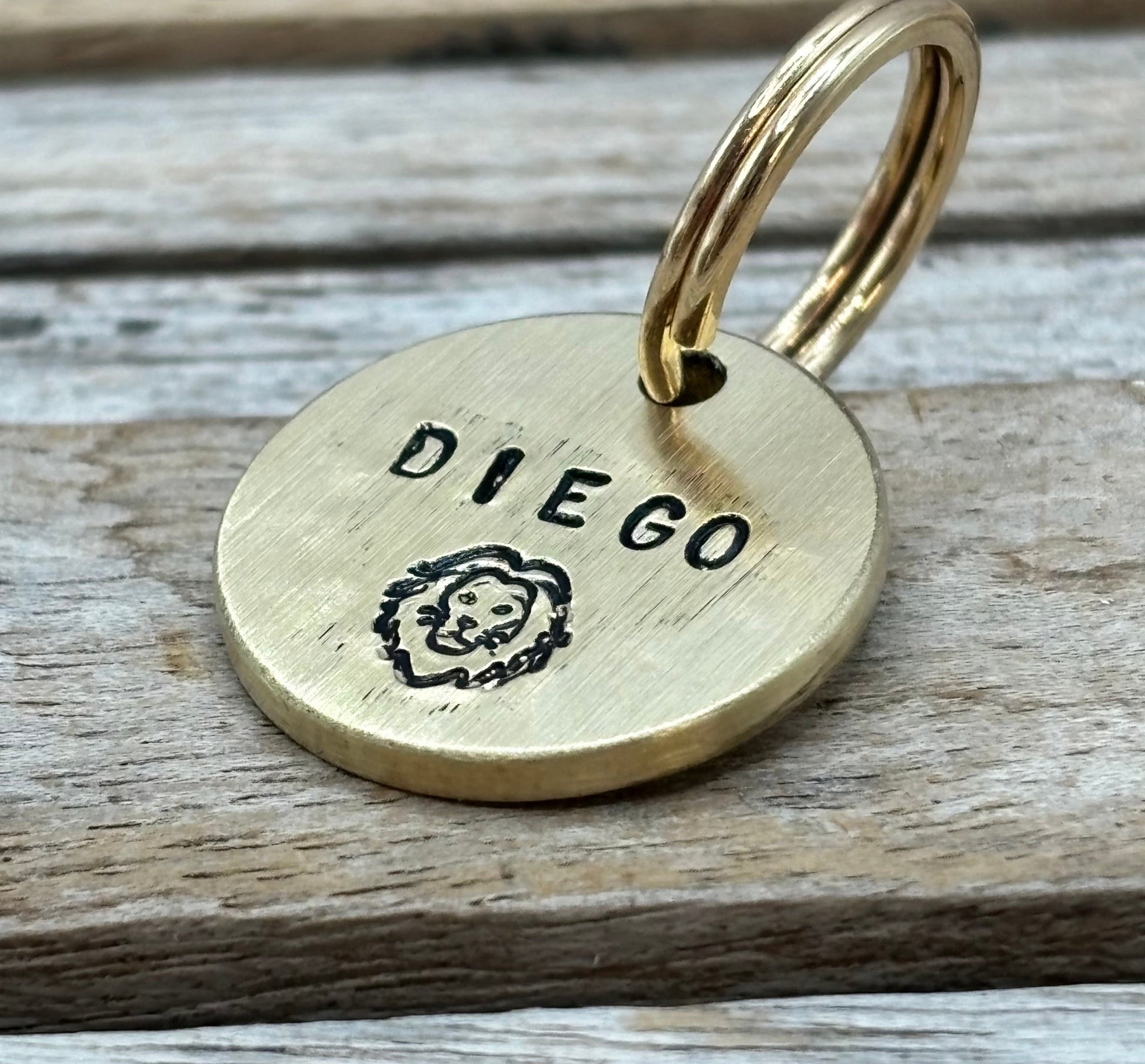 1 gepersonaliseerde dierenpenning inclusief splitring om te bevestigen aan de halsband.