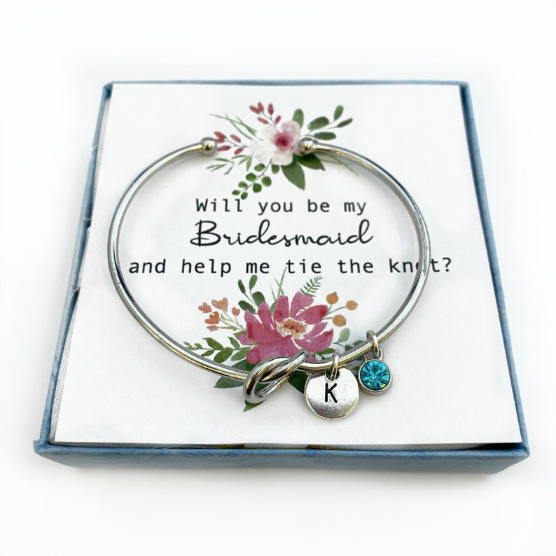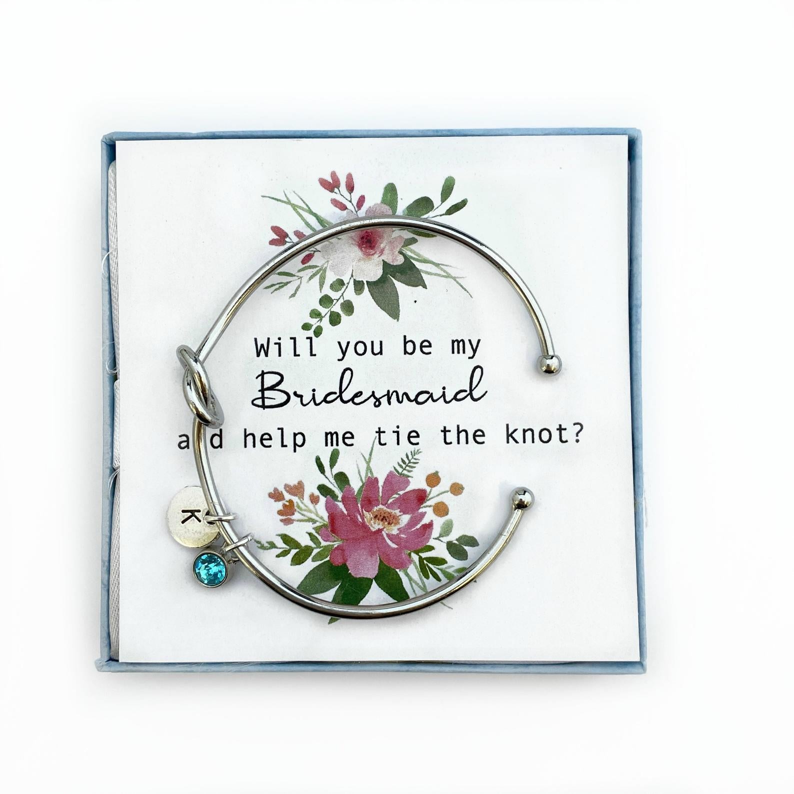 Bridesmaid Proposal, Love Knot, Will you be my Bridesmaid, Tie the Knot Bracelet, Personalised Initial Bridesmaid Gift, Love knot, Knot Bangle