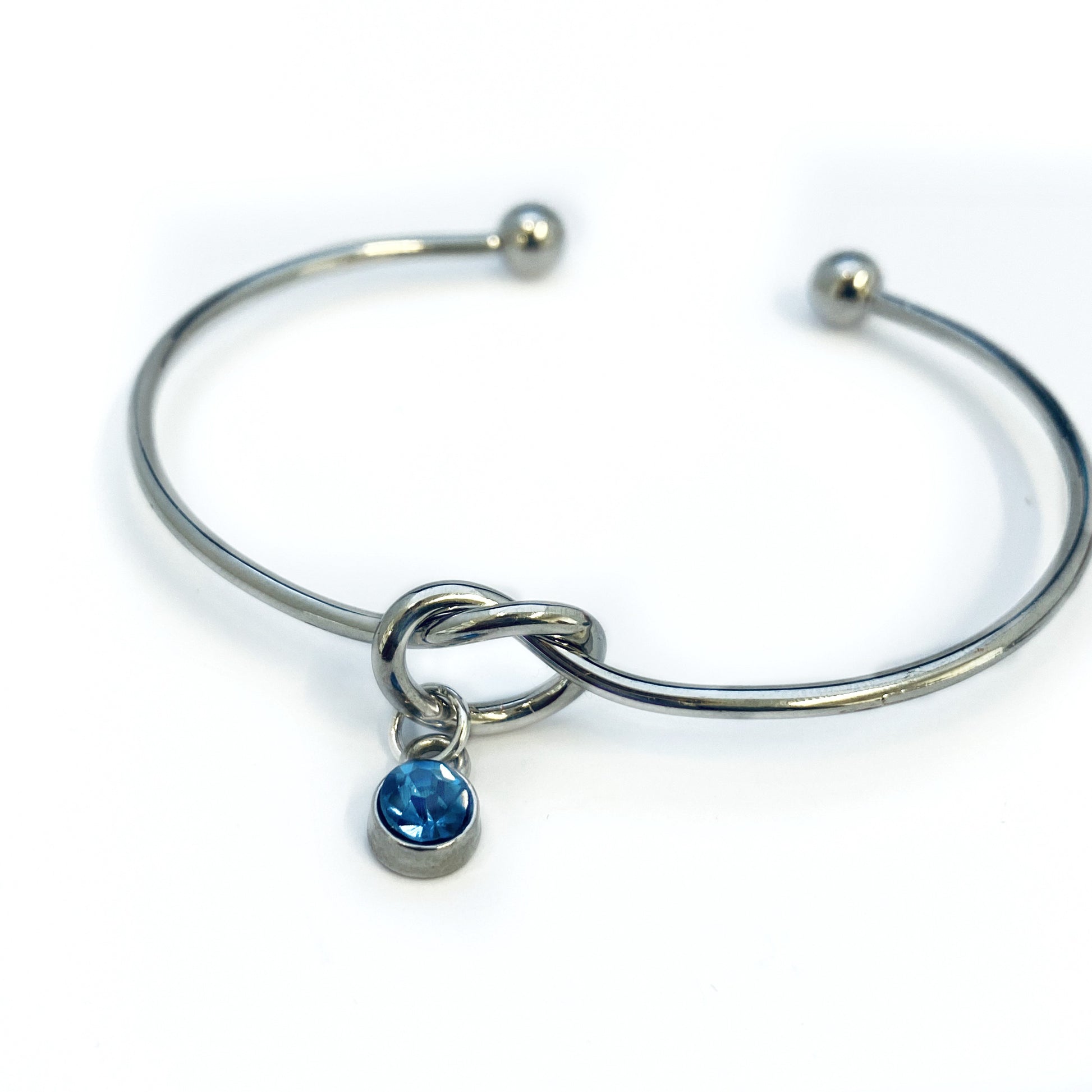 • One silver knot bracelet includes one crystal birthstone charm of your choice