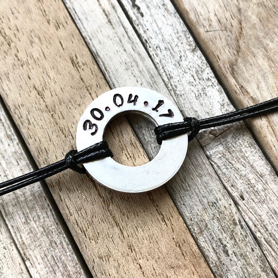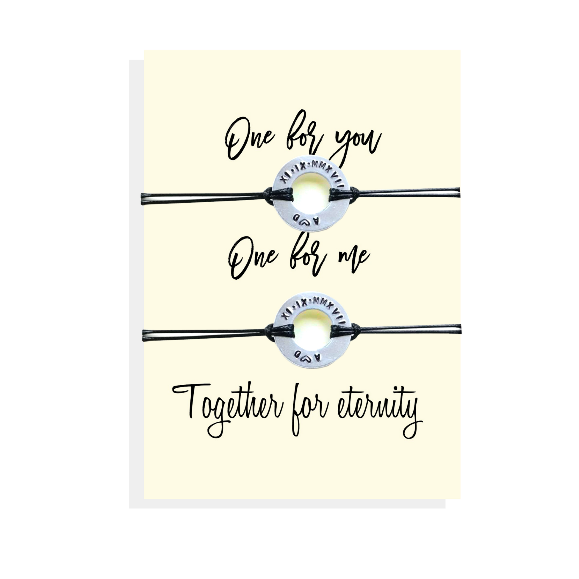 Custom made date or name bracelet, placed on a keepsake quote card as a reminder to him or her of that specific date, name or message that has special meaning to you both. Can be gifted to a loved one, or used as a graduation gift or a gift among best friends!