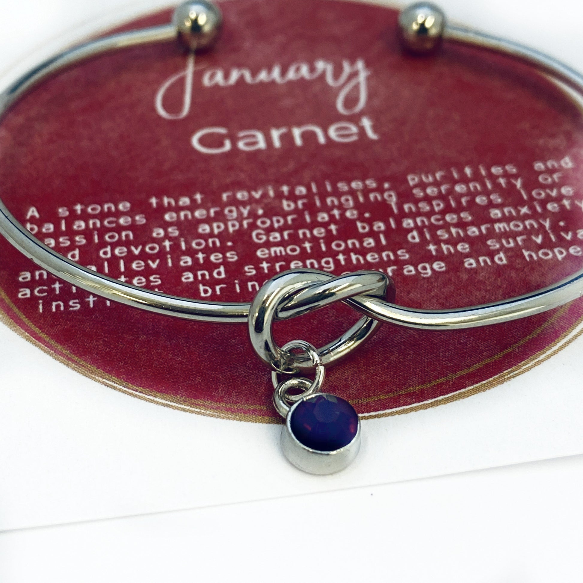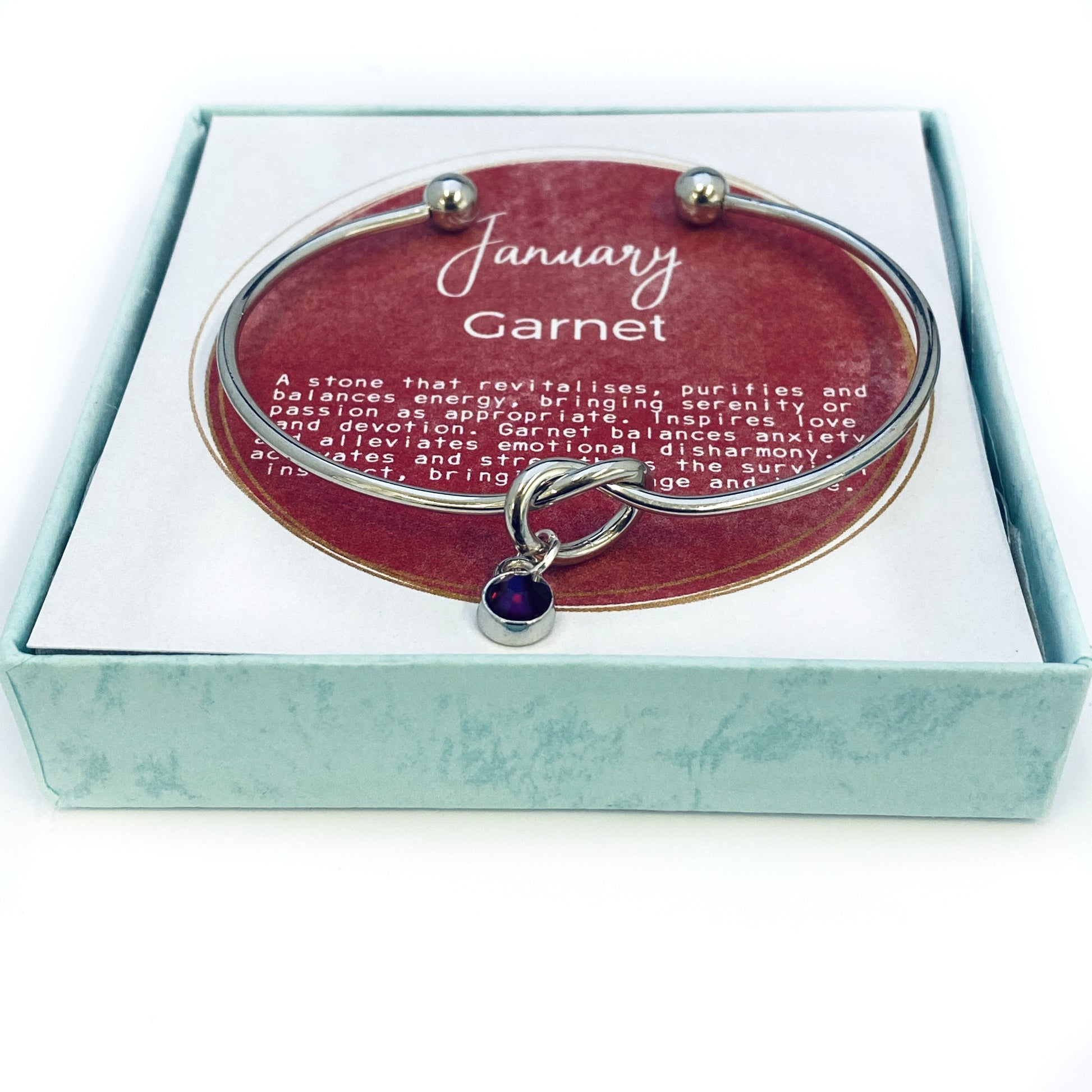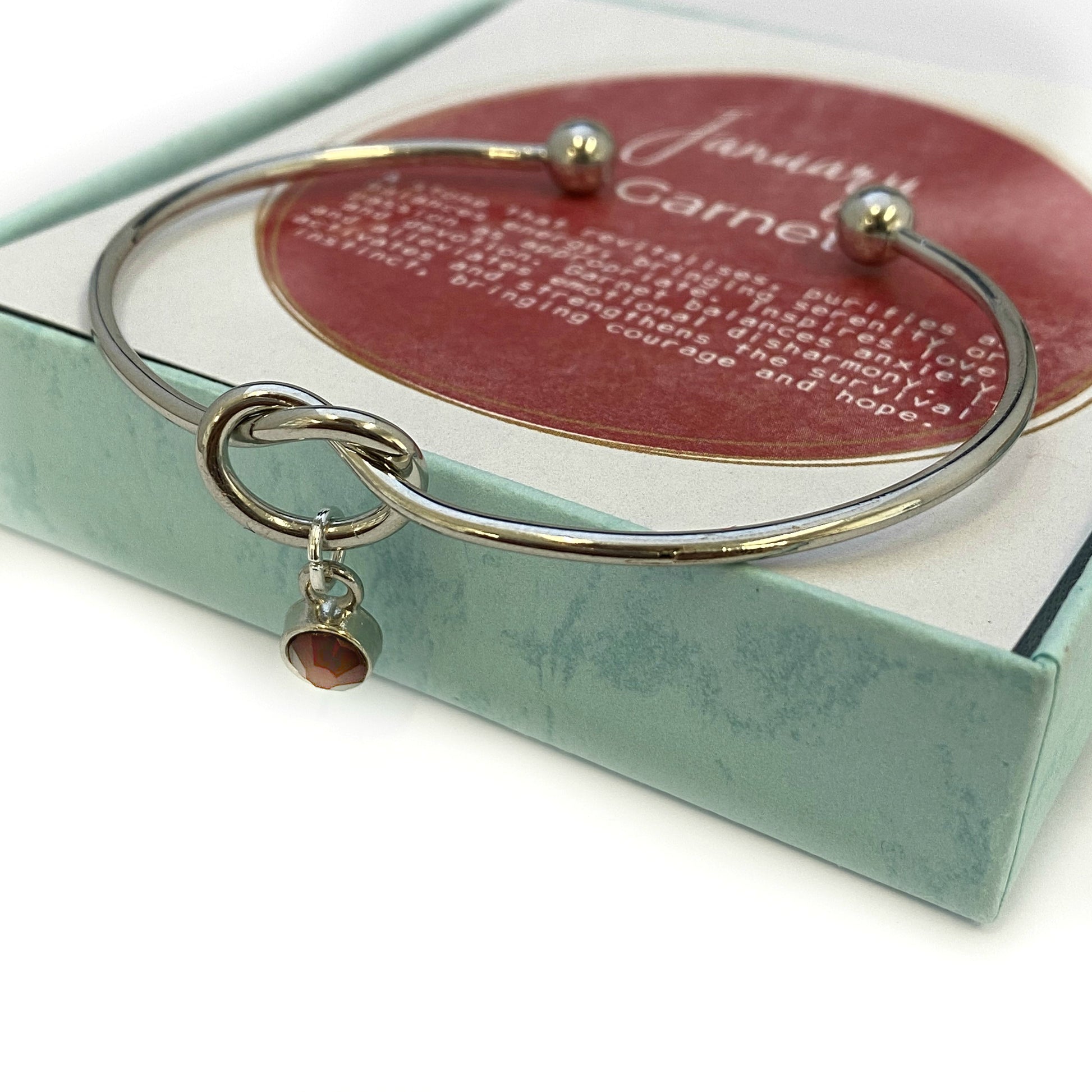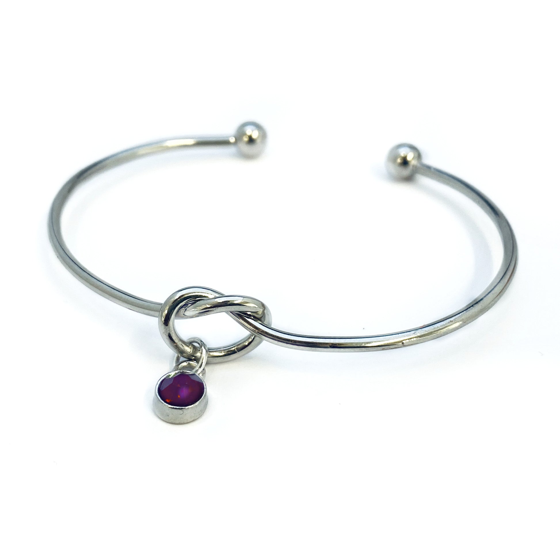 • One silver knot bracelet includes one crystal birthstone charm of your choice