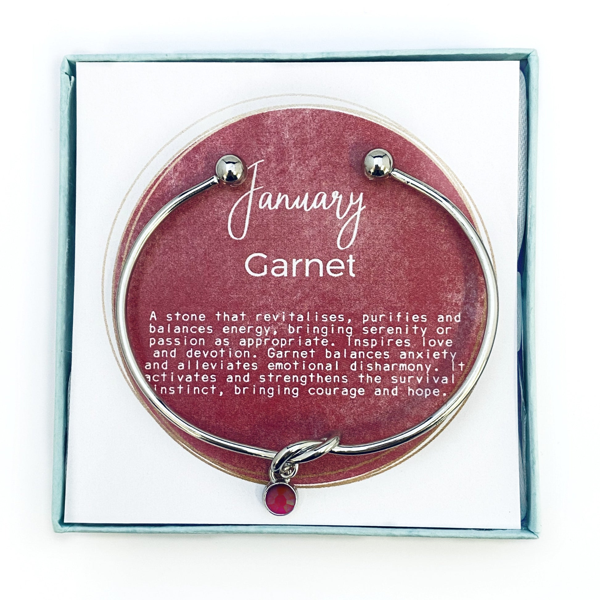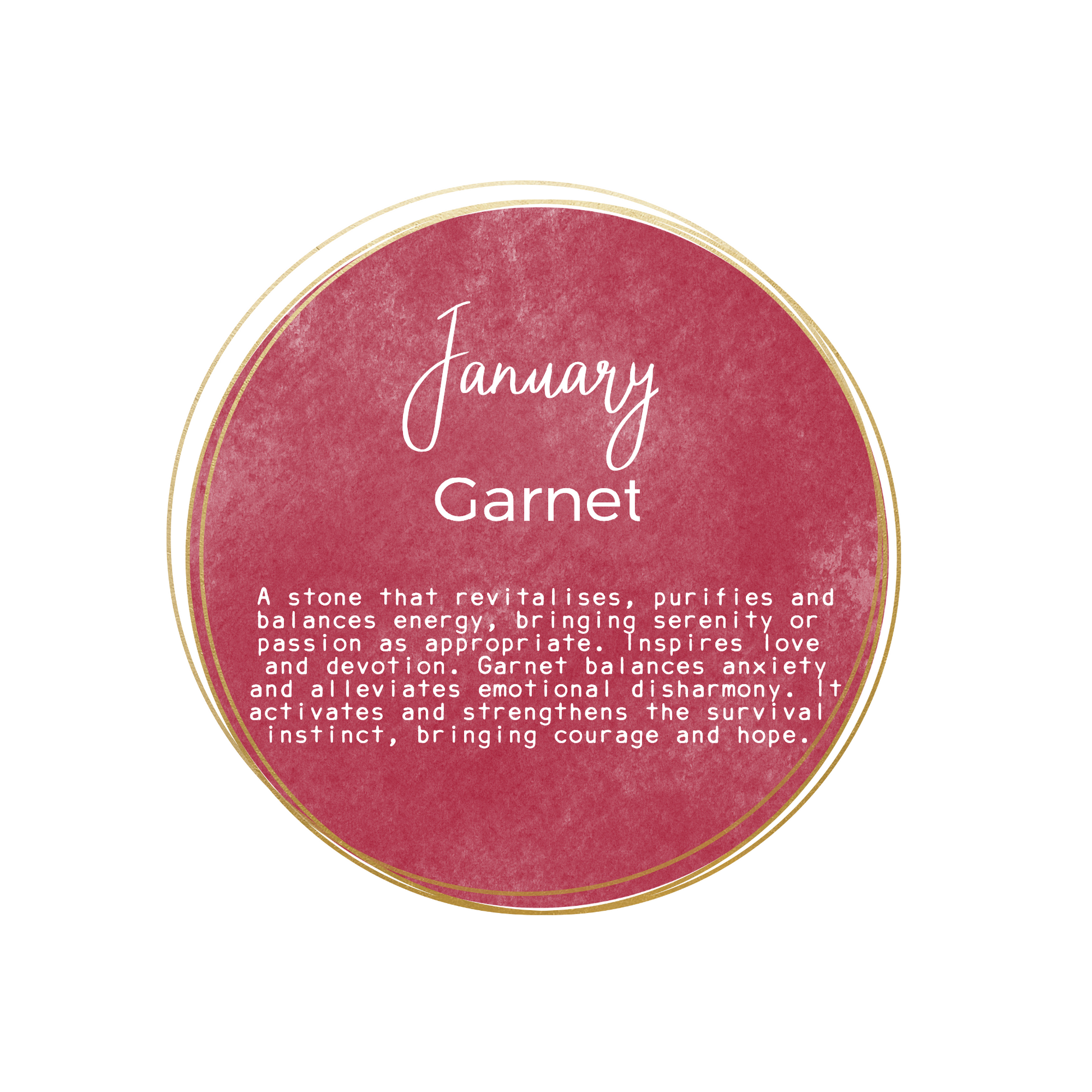 • Message card: "January Garnet"