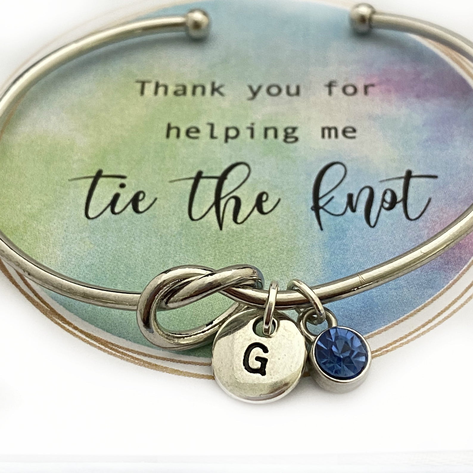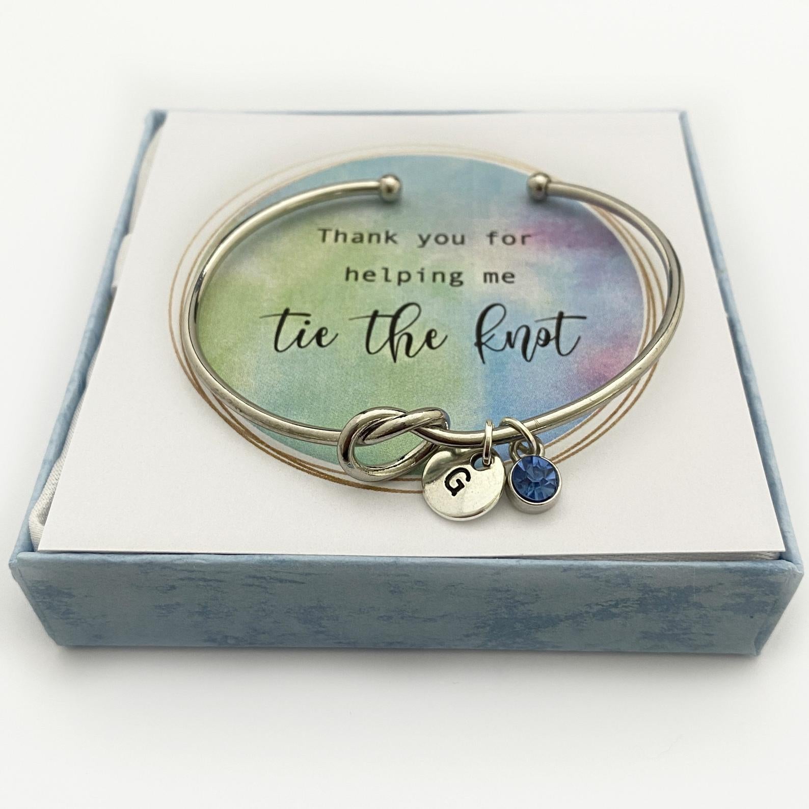 Love Knot Bracelet, Knot Bangle, Love Knot jewelry, Thank you for helping me tie the Knot Bracelet, Personalized Bridesmaid Gift
